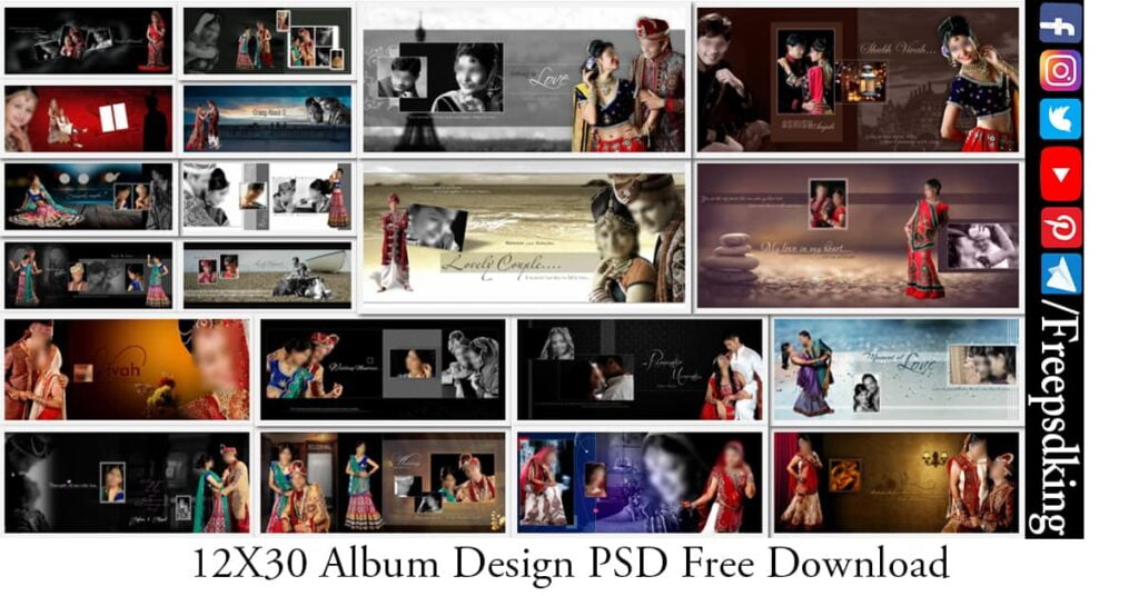 Friends! In today’s post, you get the Creative and New 12X30 Album Design PSD. Guys! If you are an album designer or Photographer and if you have Photo Studio Workshop then this is the right Website for you. We are sharing here all needs for album designing material Like Wedding Album PSD, Fonts, Studio Backgrounds, Photo Collages, logos, Cards Design, Wedding Clip-arts, and all needs of graphic designing materials. Keep in touch with our website.