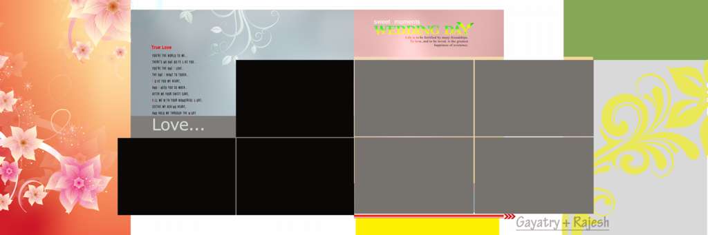 In this area published PSD Files (Photoshop Document) are design in a very creative way as users required. Every PSD Sheet has 5-7 blocks where you can upload or design your own customer’s Wedding Photo.
