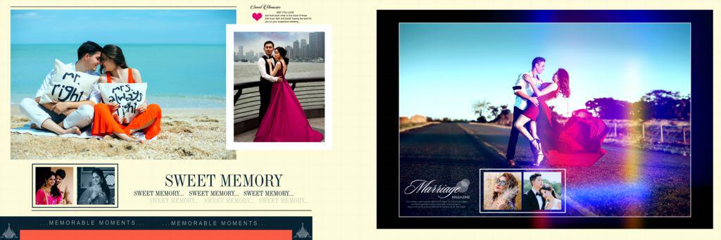 Guy’s! Published Pre Wedding Designs are fully editable separated into PSD layers. If you want to any changes or then modifications to these PSD Sheets so you can do it easily in Adobe Photoshop Software. Every PSD Sheet has 3-5 blocks where you can upload or design your own customer’s Wedding Photos.