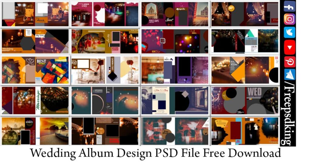 Friends! In today’s post, you get the Creative and New Wedding Album Design PSD File Free Download. Guys! If you are an album designer or Photographer and if you have Photo Studio Workshop then this is the right Website for you. We are sharing here all needs for album designing material Like Wedding Album PSD, Fonts, Studio Backgrounds, Photo Collages, logos, Cards Design, Wedding Clip-arts, and all needs of graphic designing materials. Keep in touch with our website.